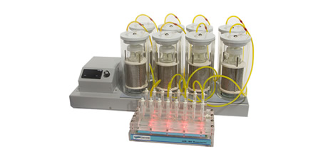 · Set on amagnetic stirrer incorporating rare-earth magnets and stirring bars with spinrings