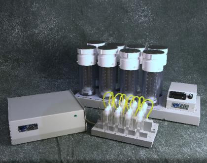 将固体介质放置在密封的反应柱中,通过磁力搅拌器搅拌激活,产生可循环的气体。密封的反应器通过使用软管连接Challenge公司专利技术的Flow Cell,得到气体变化的实时数据。可专门用于不间断的短期或长期测试,固体反应器是模块化的结构,非常易于拆开清洗,且可以使用高压灭菌锅灭菌。